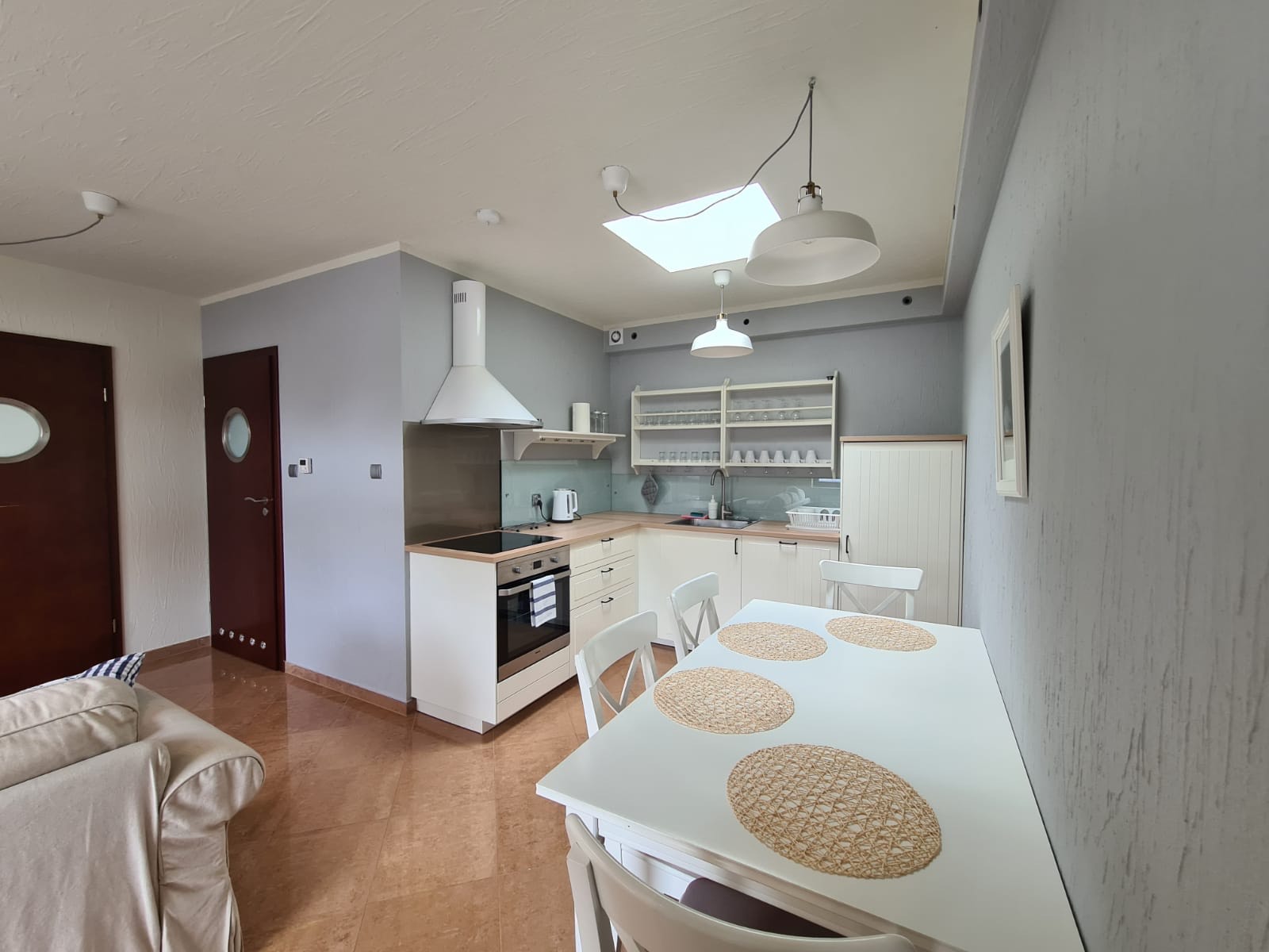 Zapraszamy do naszego stylowego apartamentu, znajdującego się na drugim piętrze, który zapewni Ci wyjątkowy komfort podczas wakacji. Apartament składa się z: