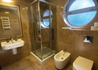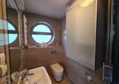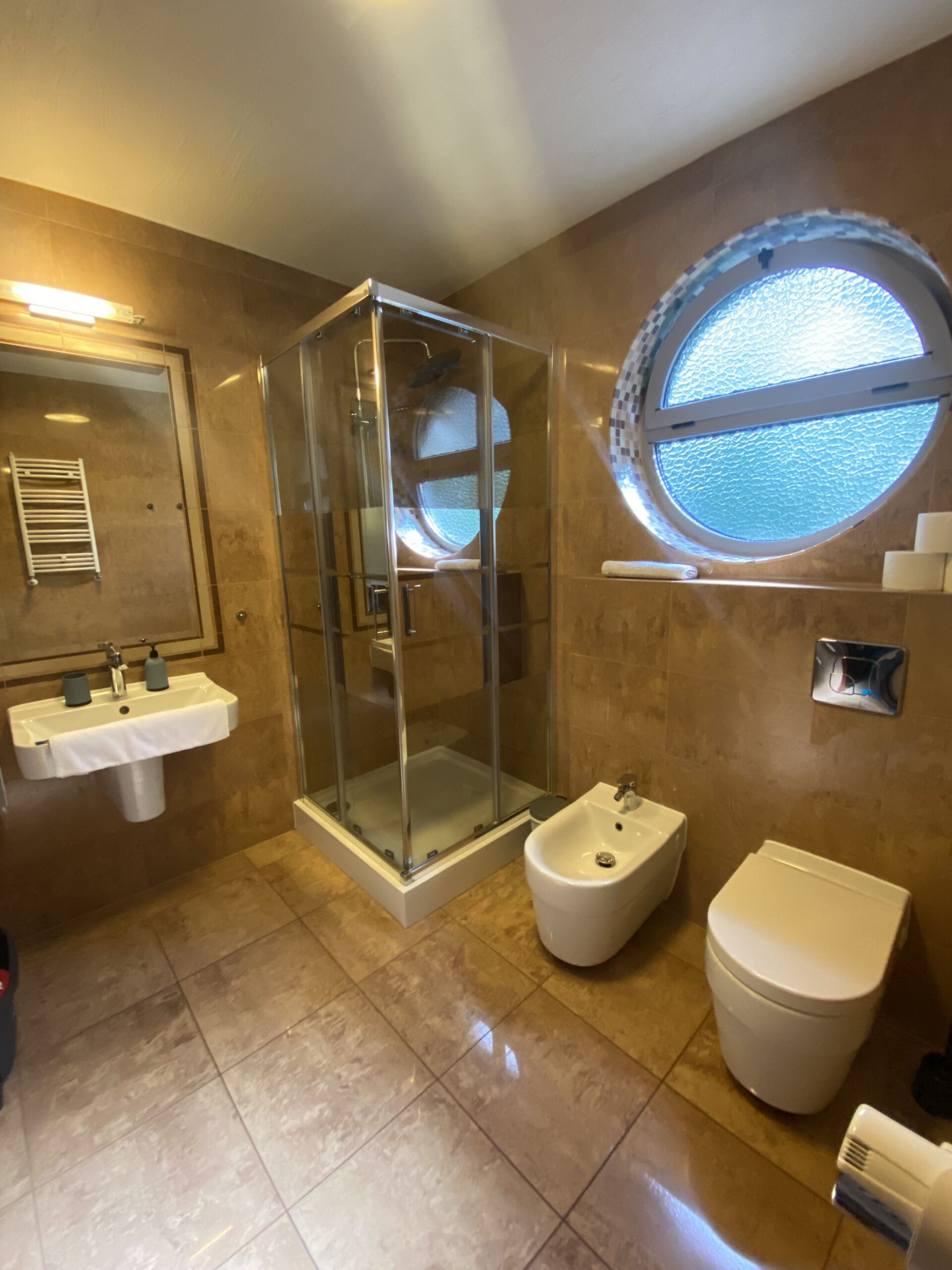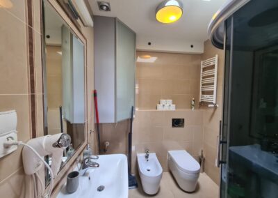Łazienki w apartamentach wyposażone są w prysznice z hydromasażem oraz toalety z bidetem. Dodatkowo znajdziecie suszarki do włosów. W łazienkach nie ma pralek.